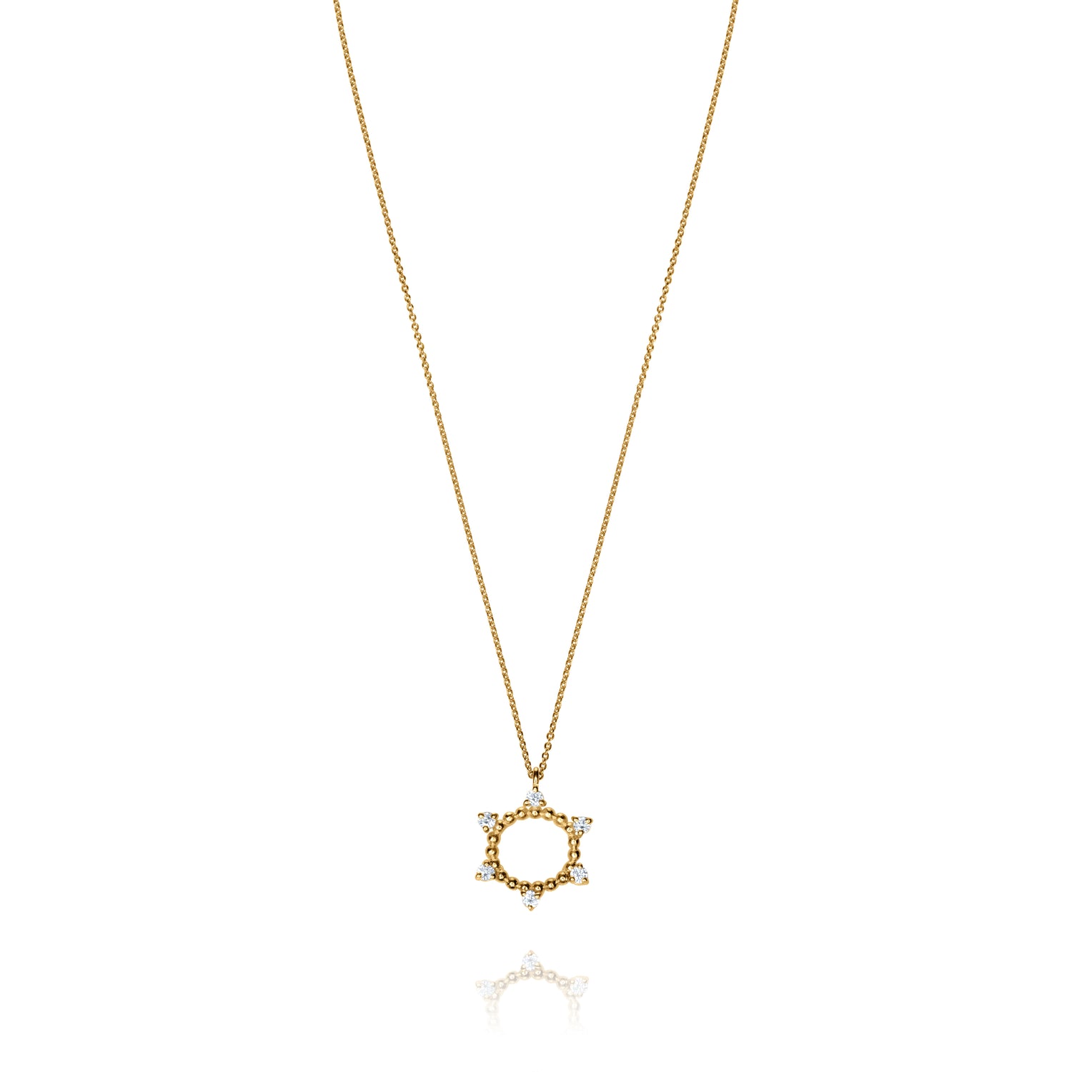 La Vie jewelry από ασήμι 925 σε κίτρινο χρυσό με ένα μενταγιόν αστέρι με λευκά ζιργκόν. Φωτίζει κάθε εμφάνιση με τη διακριτική του λάμψη. Ο λεπτεπίλεπτος αστεροειδής κύκλος με λαμπερά ζιργκόν αποπνέει ρομαντισμό και θετική ενέργεια, κάνοντάς το ιδανικό δώρο για εσένα ή για κάποιο αγαπημένο πρόσωπο. Φόρεσέ το μόνο του ή συνδύασέ το με άλλα κολιέ για ένα παιχνιδιάρικο layered look.